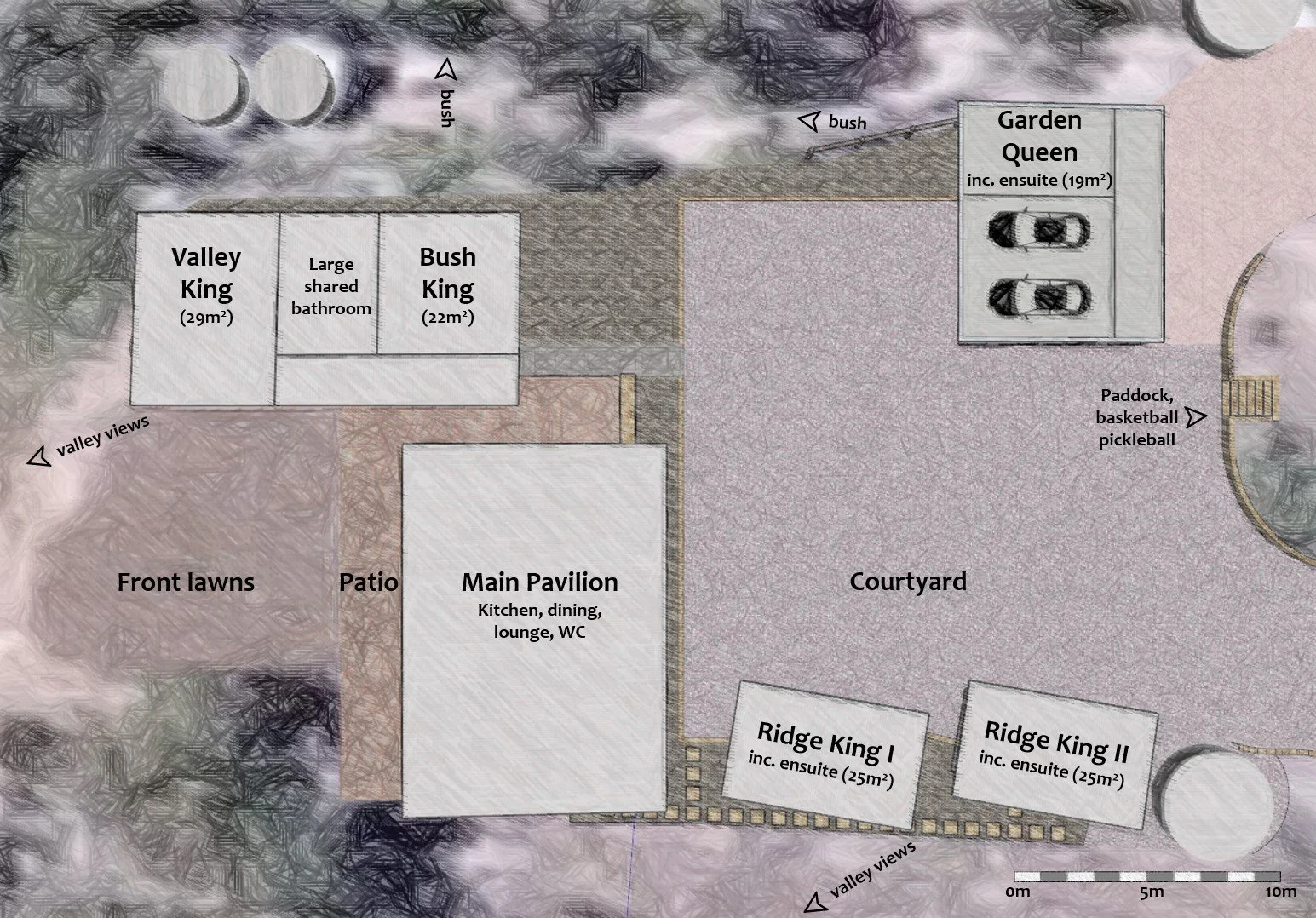 All stays include exclusive use the property - including the Main Pavilion with its large living area, chefβs kitchen, pantry and WC - and the lodging options below.